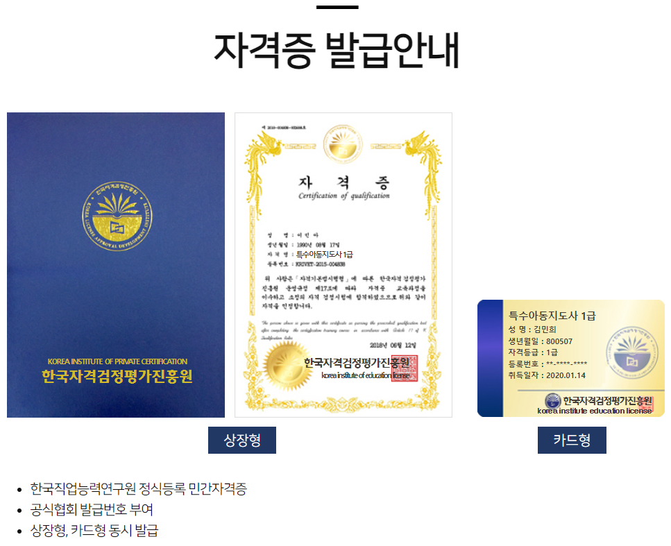 - 기타: 시험 합격만으로 자격인정 불가, 발급비 납부자에 한하여 자격 취득 번호 부여됩니다.