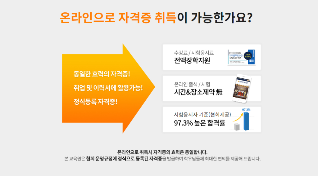 합격자 중 자격증 발급희망자는 자격증 발급신청 및 협회 발급비 9만원 납부
